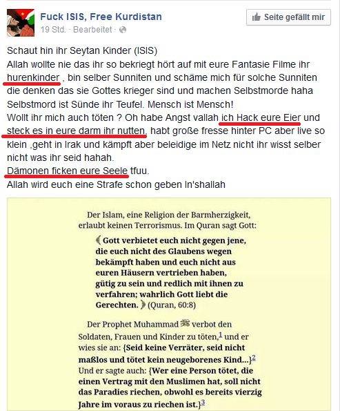 Ich mache natürlich nicht andauernd Bildabgriffe, wenn mich die Intelligenz zeitgenössischer Salafi-Kritiker besonders beeindruckt. Der folgende Beitrag eines Kurden jedoch, der von sich behauptete ein „Sunniten“ zu sein und deshalb als qualifiziert erachtete sich in Quranexegese zu ergehen, war es mir dann aber doch wert:
